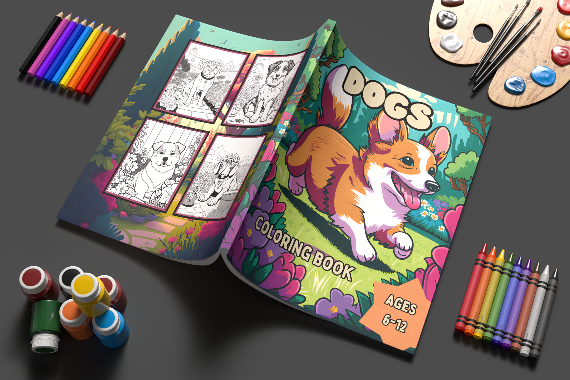 Cute dogs coloring book for kids ages 6-12